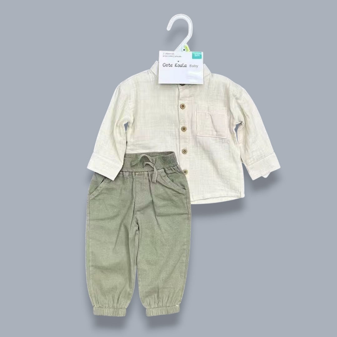Conjuntos Bebé - Niño SALIDAS Y OCACIONES ESPECIALES Conjuntos perfectos para ocasiones especiales, reuniones familiares o para un outfit más arreglado sin perder comodidad. La camisa de manga larga con botones le da un estilo elegante, mientras el pantalón es suave y ligero para que el bebé se m...