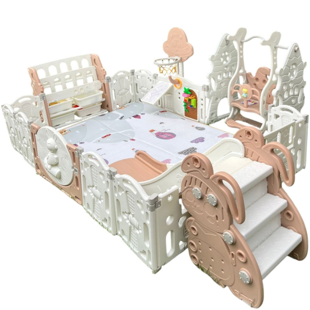 🐻 Corral de Juego con Diseño de Oso – Extra Grande, Completo y Súper Seguro Convierte cualquier espacio en un lugar seguro y divertido para tu bebé. Este hermoso corral de plástico, con diseño de oso, es libre de BPA, no tóxico y 100% seguro para bebés y niños. Ideal para interiores o exterio...