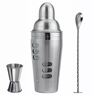 Juego de coctelera de acero inoxidable VASO GIRATORIO CON RECETAS 700 ML, conjunto de herramientas de barra, Kit de barman, cuchara de cóctel, copa dosificadora.