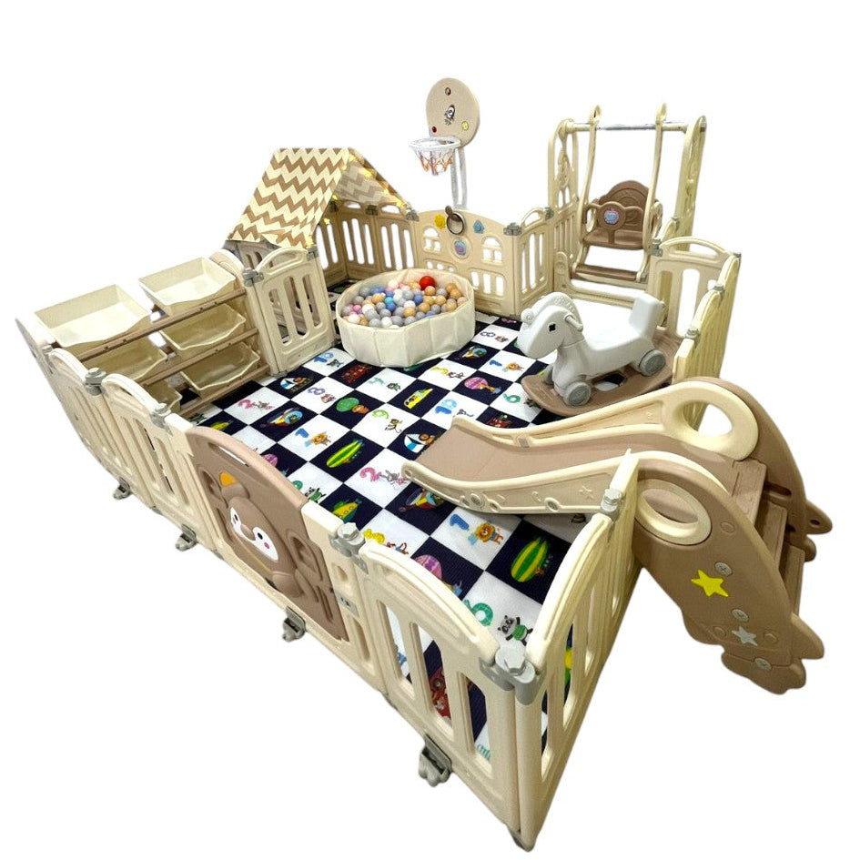 🐻 Corral de Juego con Diseño de Oso – Extra Grande, Completo y Súper Seguro Convierte cualquier espacio en un lugar seguro y divertido para tu bebé. Este hermoso corral de plástico, con diseño de oso, es libre de BPA, no tóxico y 100% seguro para bebés y niños. Ideal para interiores o exterio...