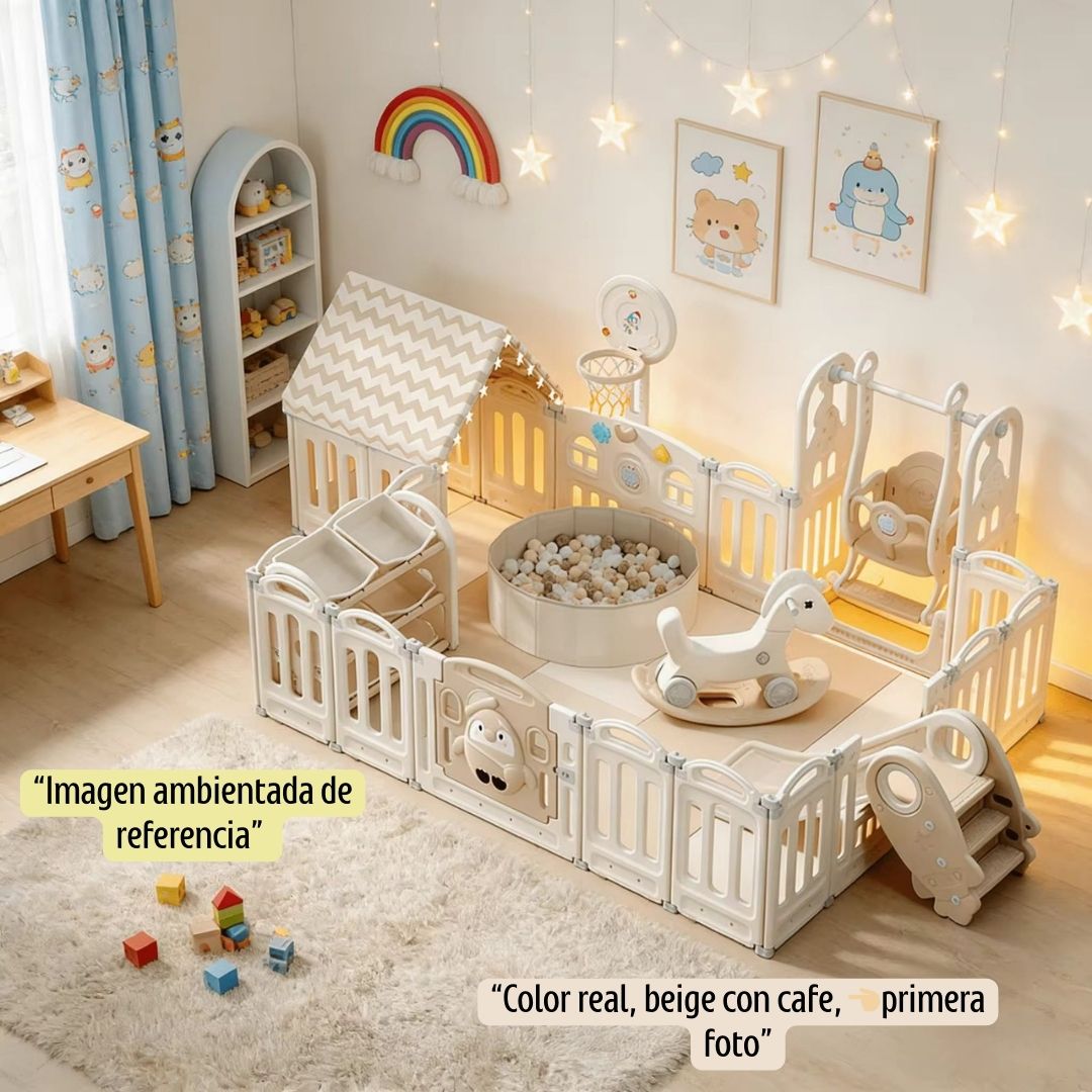Corral Parque para Bebés y Niños Convierte cualquier espacio de tu hogar en un lugar seguro, divertido y estimulante para tus pequeños. Este increíble corral de juegos incluye todo lo que necesitan para horas de entretenimiento, mientras tú disfrutas de la tranquilidad de saber que están prote...
