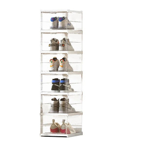Resistente y estable: estas cajas de zapatos plegables todo en uno de 6 niveles están hechas de material plástico resistente. El diseño grueso garantiza su fiabilidad y durabilidad. Un diseño simple entrelazado hace que la caja de zapatos sea estable y firme. Usando materias primas acrílicas y PP fuertes y respetuosas con el medio ambiente, esta caja de zapatos transparente con una cubierta no será tan frágil como otras cajas de zapatos de papel baratas en el mercado.